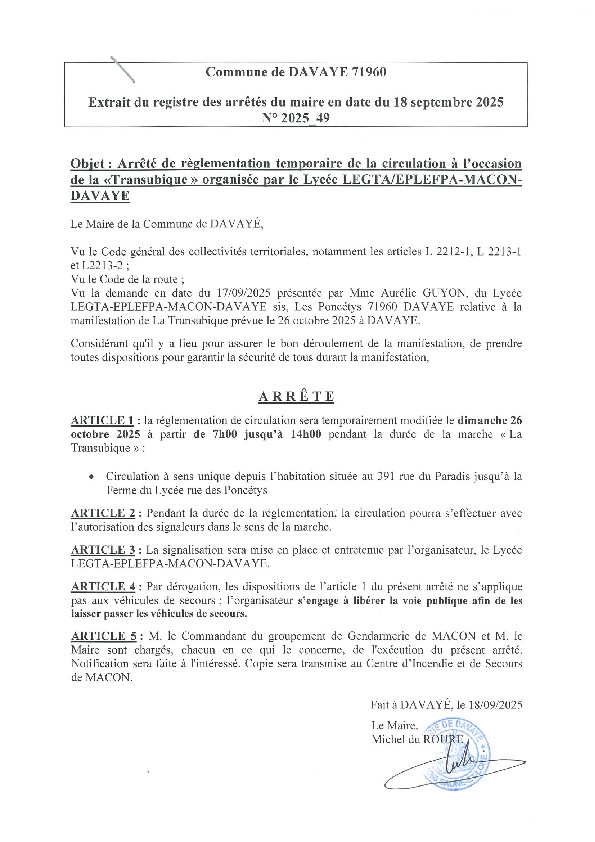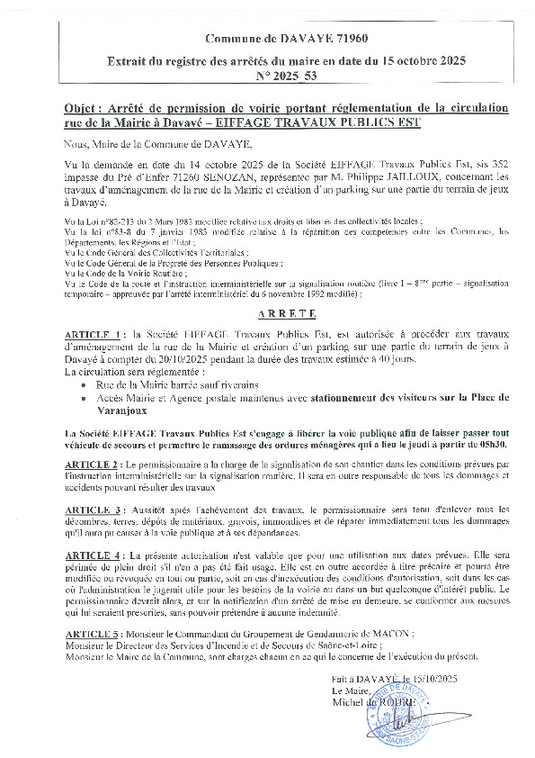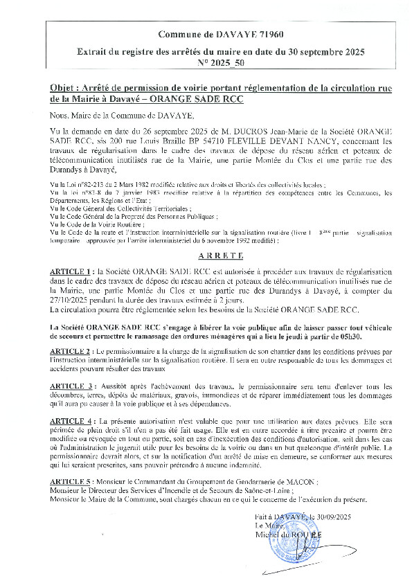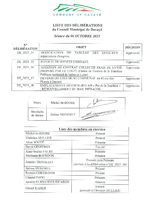 Le Conseil municipal de Davayé se réunira en session ordinaire,