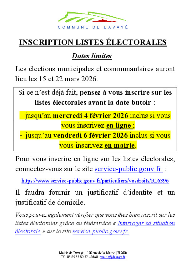 Lien pour s'inscrire en ligne sur les listes électorales :