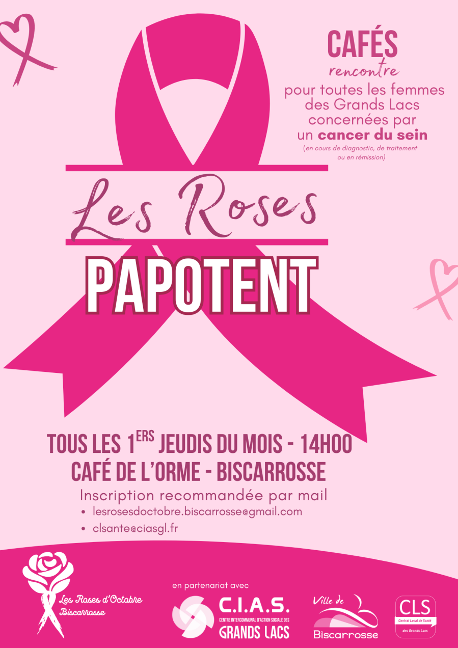 A partir de novembre, des cafés rencontres intitulés « Les Roses Papotent » seront organisés tous les 1ers jeudis du mois au Café de l’Orme à Biscarrosse.