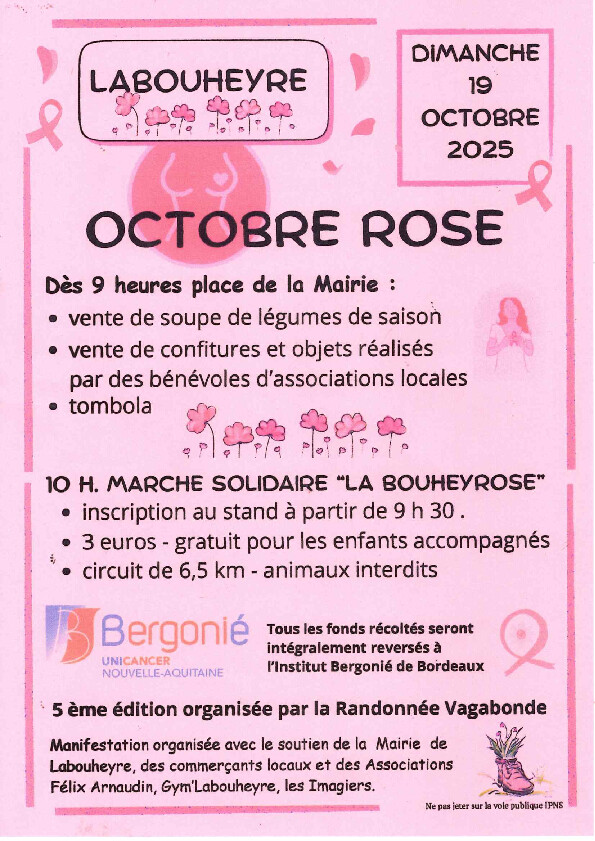Le CIAS des Grands Lacs soutient l’association Les Roses d’Octobre de Biscarrosse, tant dans l’organisation de ces rencontres que dans leur communication. Cette initiative s’intègre pleinement au Contrat Local de Santé des Grands Lacs, piloté par la Communauté de Communes et animé par le CIAS.