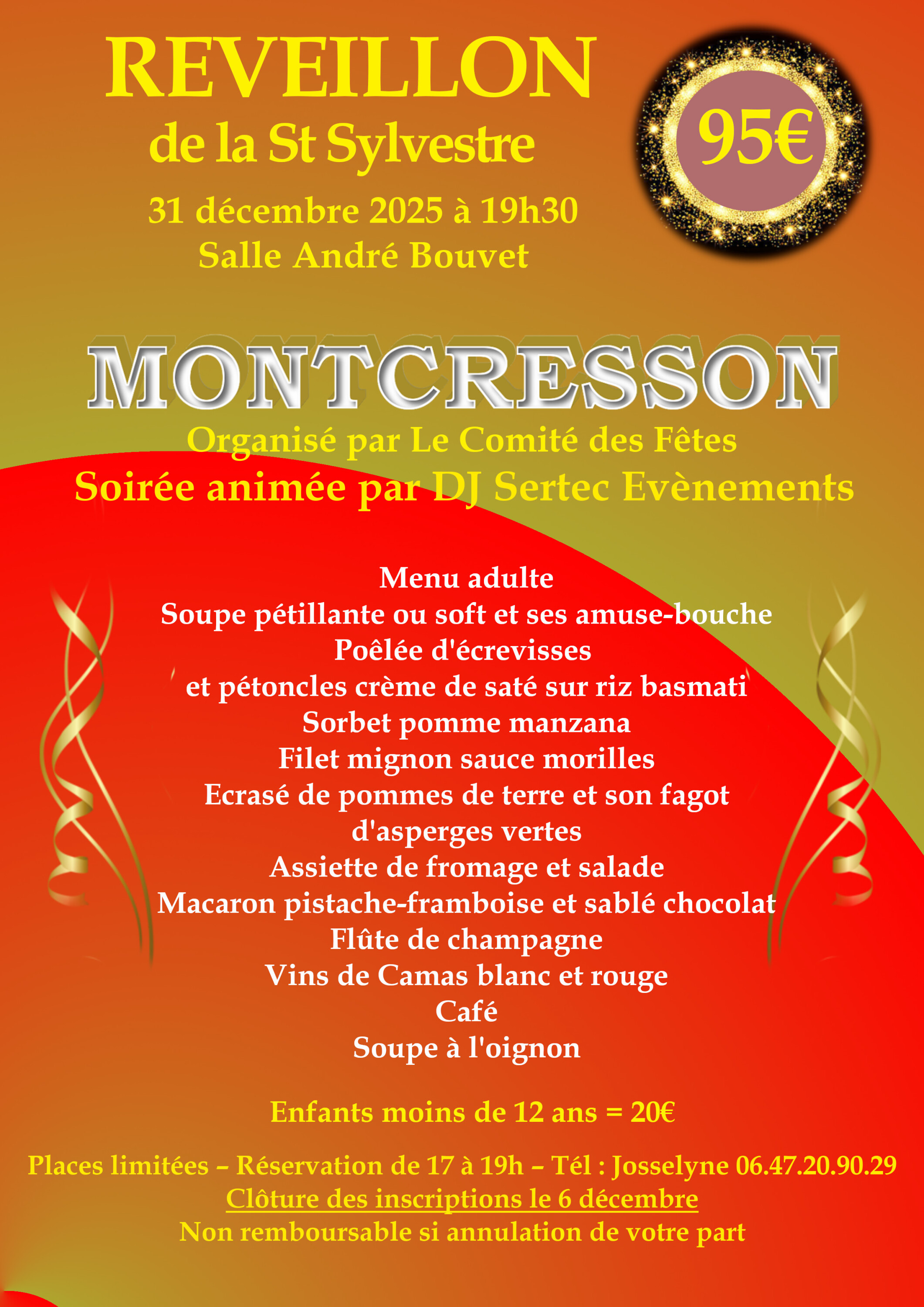 le samedi 8 novembre à 19h30 à la salle des fêtes André Bouvet de Montcresson (45).