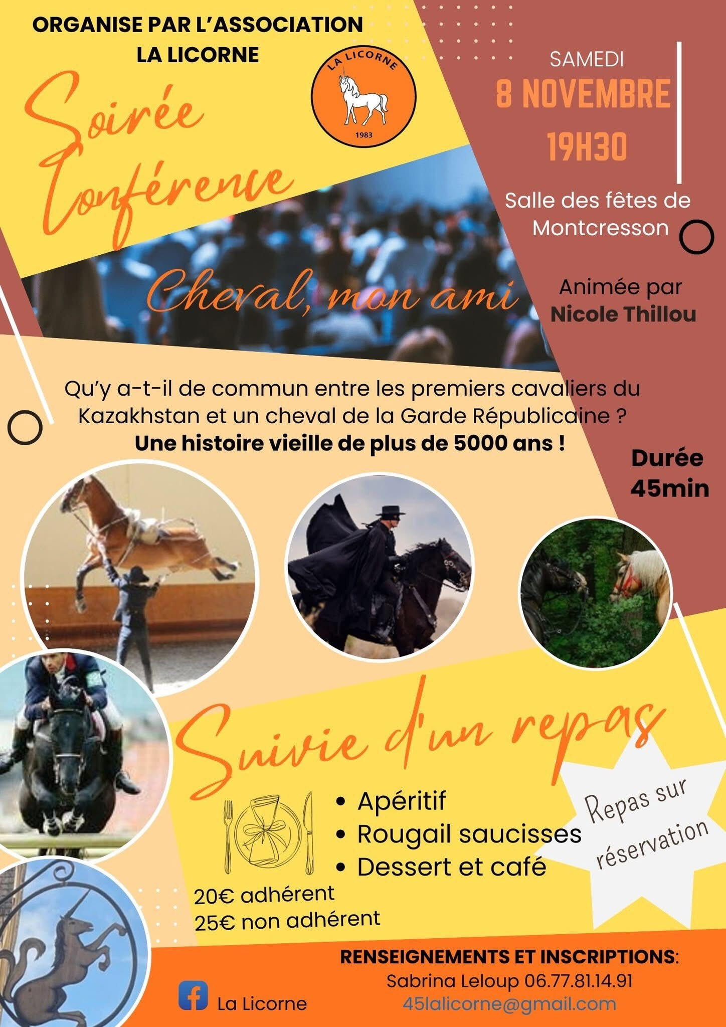 L’association La Licorne vous propose de les retrouver à la soirée conférence au doux titre de : Cheval, mon ami. 🐴