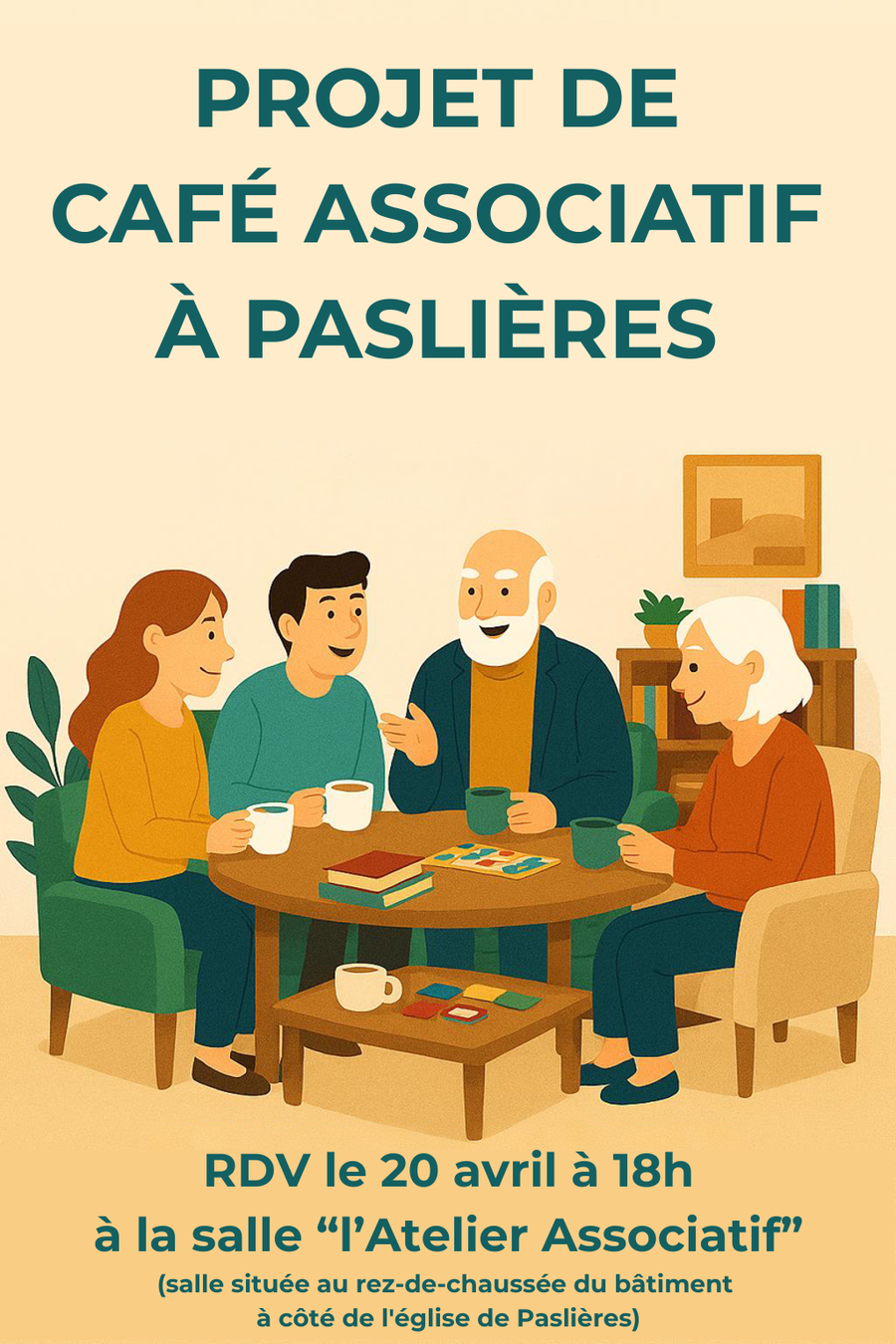 Suite à la première réunion qui a eu lieu le 30 mars, l’objectif est d’avancer sur le projet de création d’un café associatif.