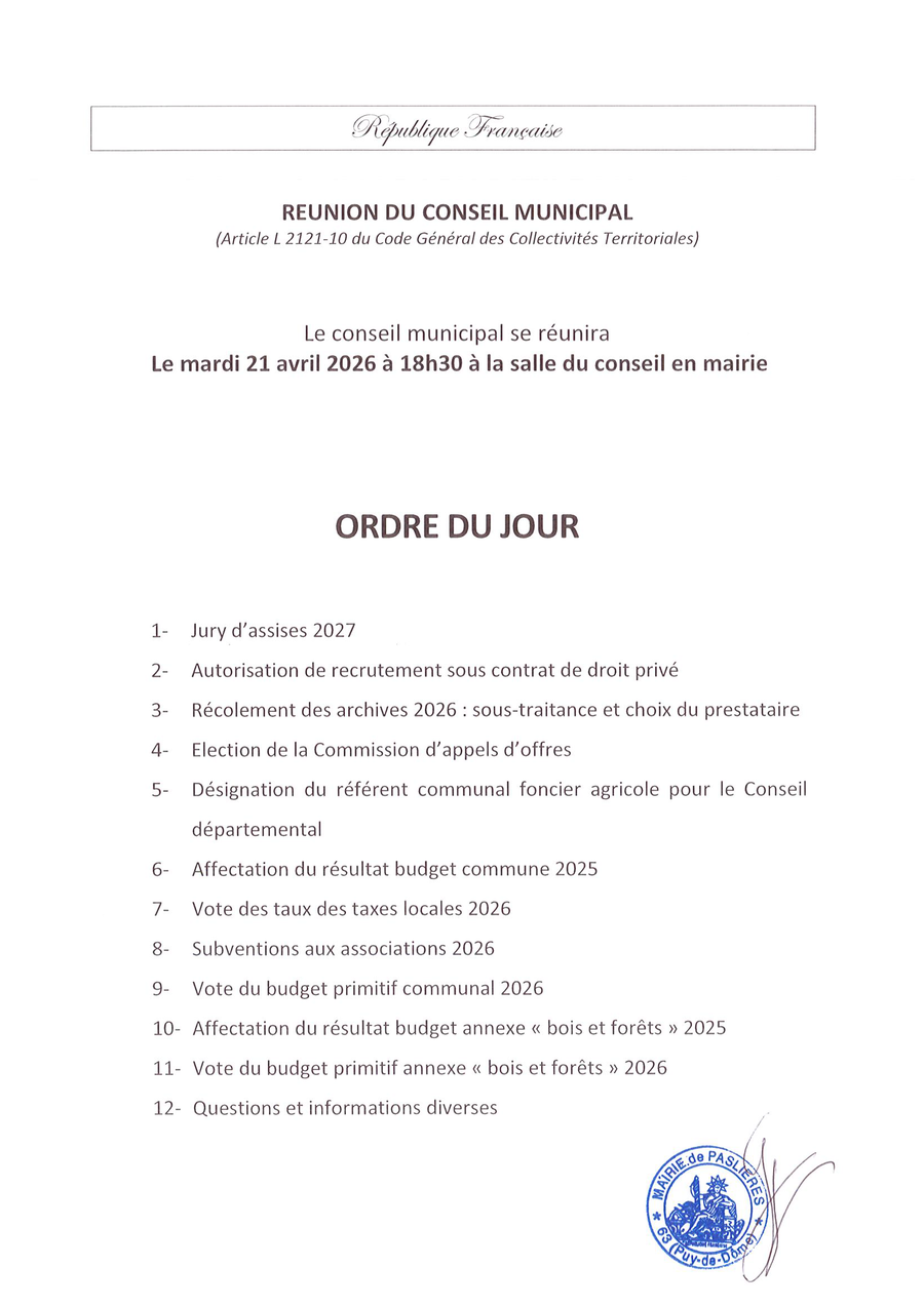 ou disponible à la Mairie de Paslières