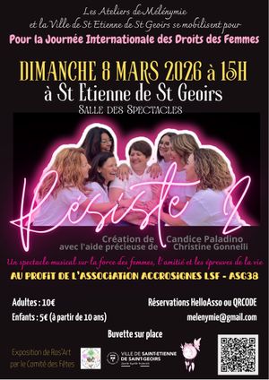 Rendez-vous pour la journée de la femme : dimanche 8 mars 2026 à 15h à la Salle des Spectacles. Les bénéfices seront reversés à l’association ACCROSIGNES LSF-ASG38.