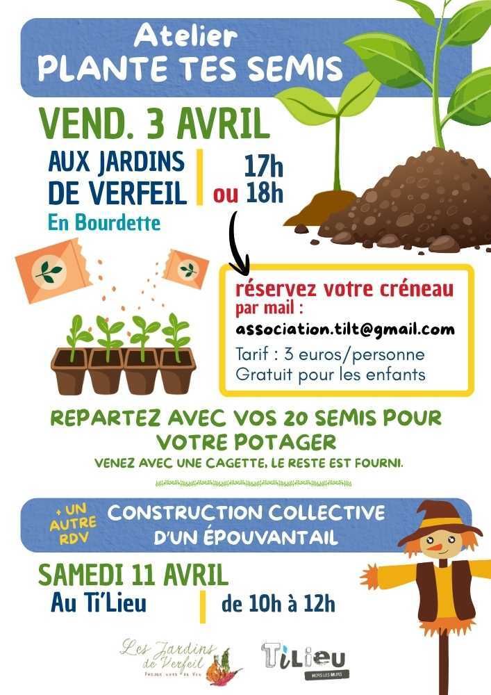 Les Jardins de Verfeil et le Ti'Lieu organisent un atelier semis le vendredi 3 avril. 📅