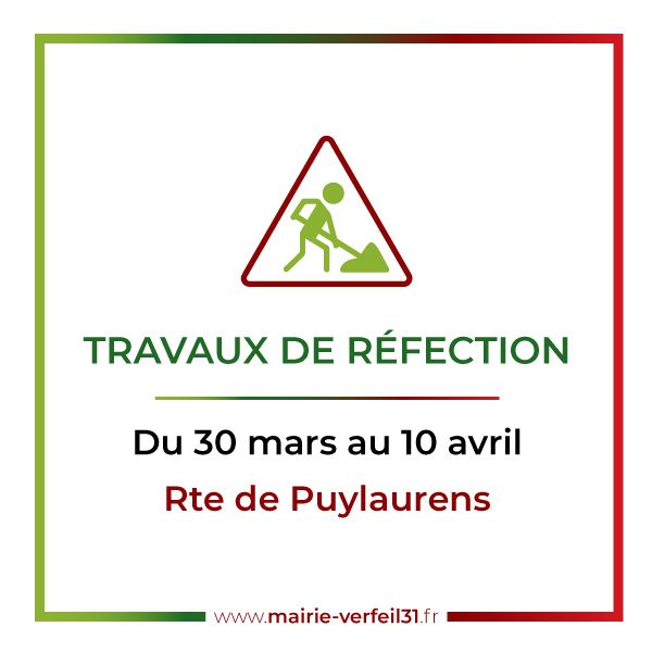 Dans le cadre des travaux de réfection de la chaussée sur la Route de Puylaurens, les interventions seront réalisées par les entreprises Eiffage et GUINTOLI. 🚧