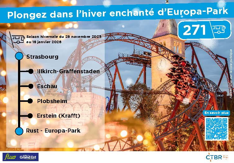 Que ce soit en famille, entre amis ou en amoureux, la saison hivernale d’Europa-Park est l’occasion idéale de vivre la magie des fêtes ✨… et grâce à la ligne 271 qui passe par Erstein Krafft, vous pouvez vous y rendre facilement et sans stress !