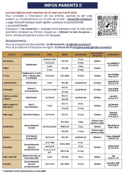 📞 Infos et réservations : culture@ville-erstein.fr ou 03 88 64 53 85