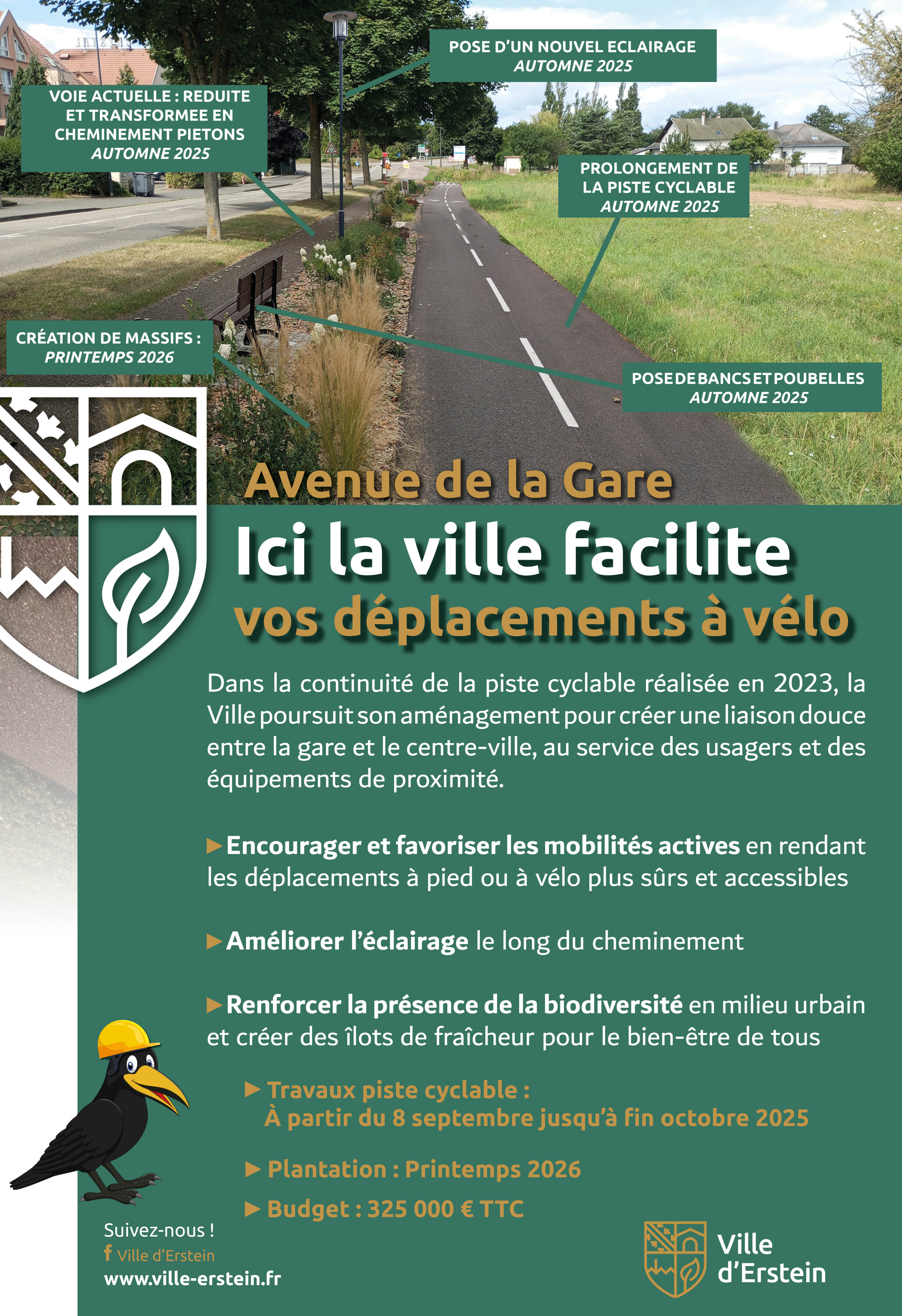 Retrouvez toutes les infos travaux sur la page facebook https://www.facebook.com/InfochantierErstein et sur le site de la CEA : https://inforoute.alsace.eu/
