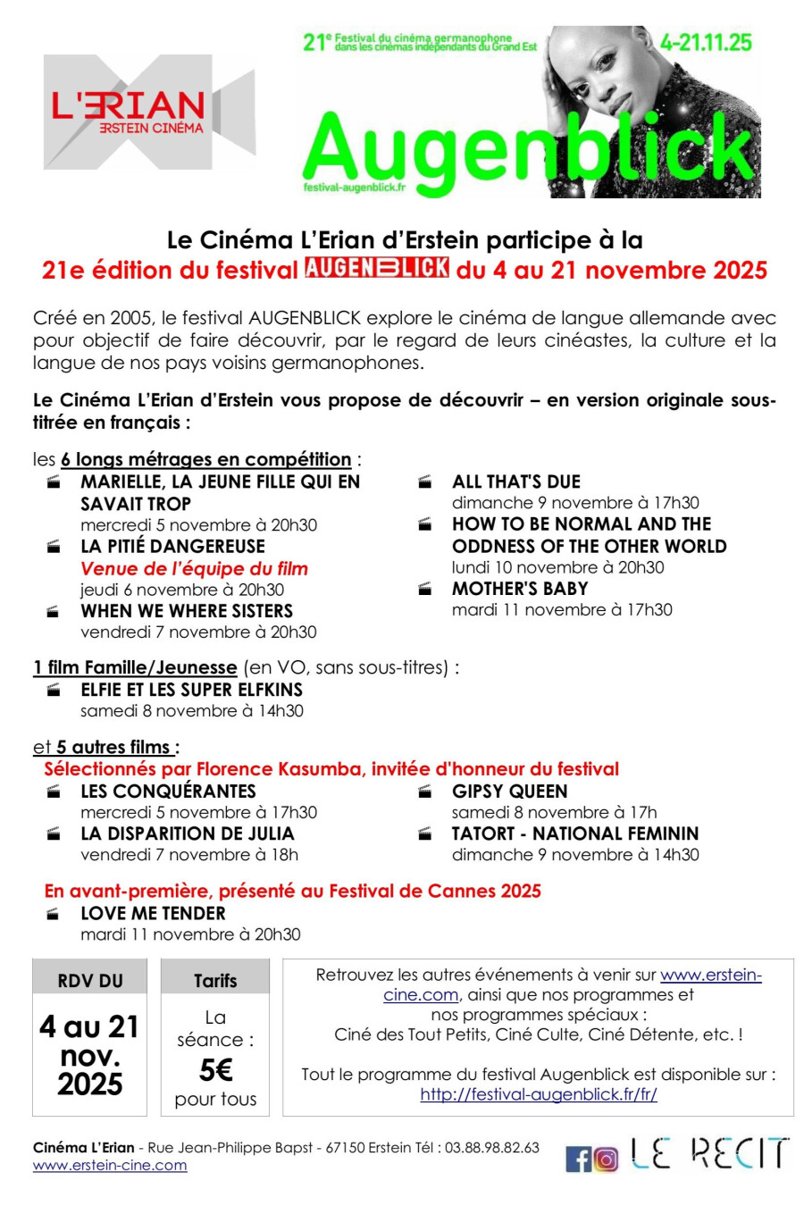 Le Cinéma L’Erian d’Erstein participe à la 21e édition du festival AUGENBLICK