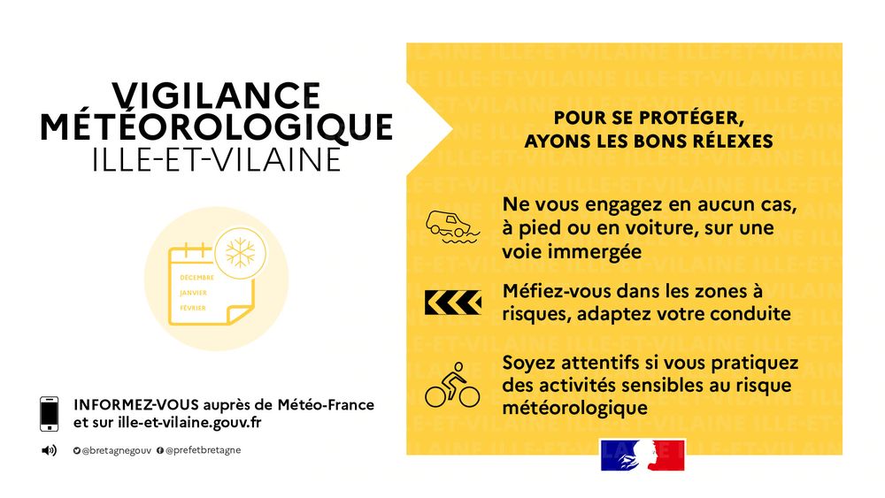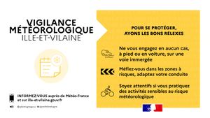 Restez informés sur l’évolution de la situation météorologique sur https://vigilance.meteofrance.fr/fr/ille-et-vilaine et sur https://www.vigicrues.gouv.fr/