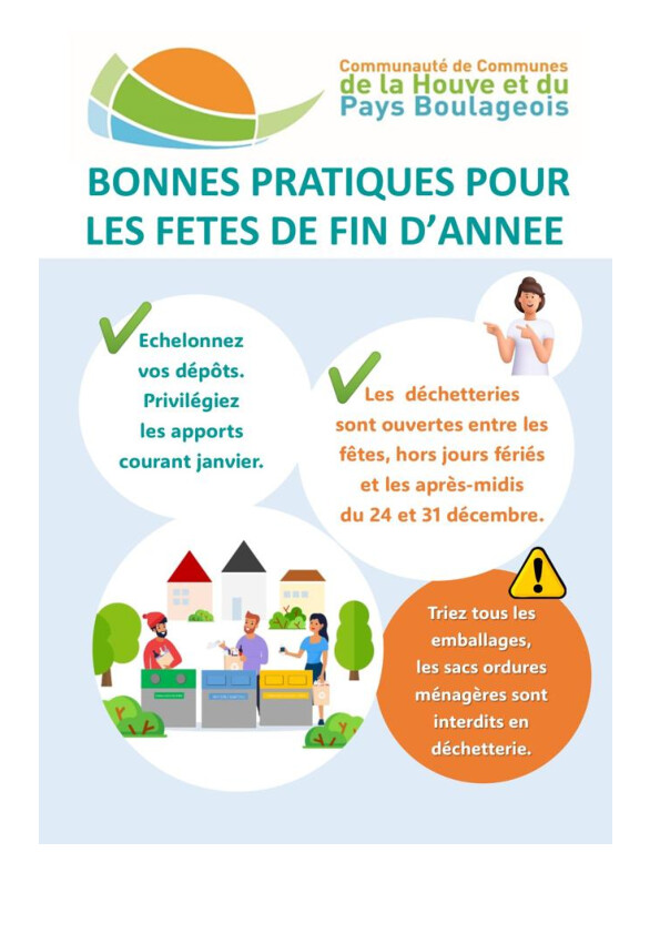 ➡ Les déchetteries communautaires seront fermées du 24 décembre 12h au 26 décembre et du 31 décembre 12h au 1er janvier.