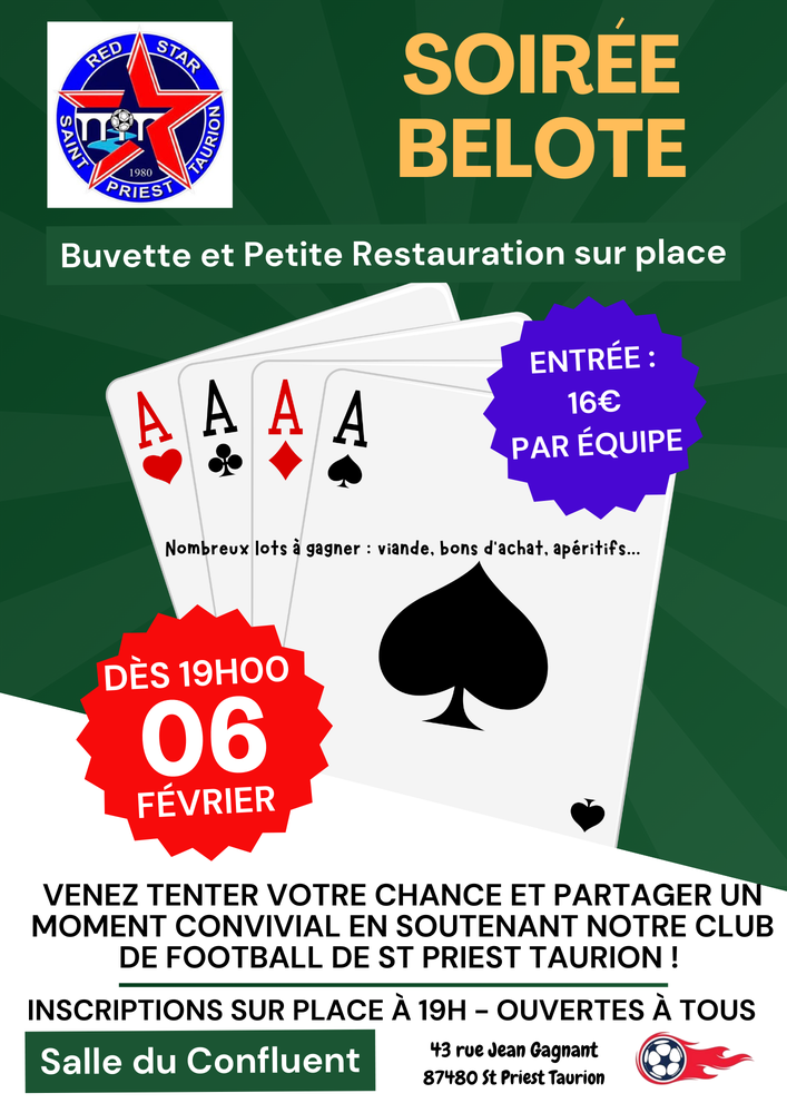 Soirée belote organisée par le Red Star Club Saint Priest Taurion - Officiel
