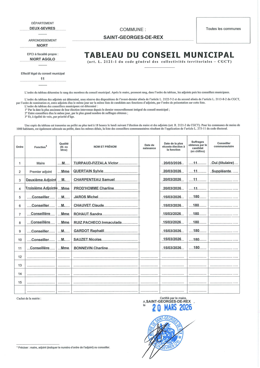Le Conseil municipal se réunira le Mercredi 1er Avril 2026 à 18h00 dans la salle du Conseil et des Mariages de la Mairie