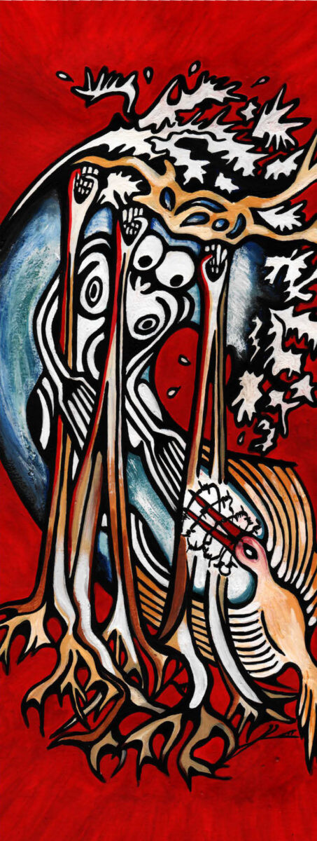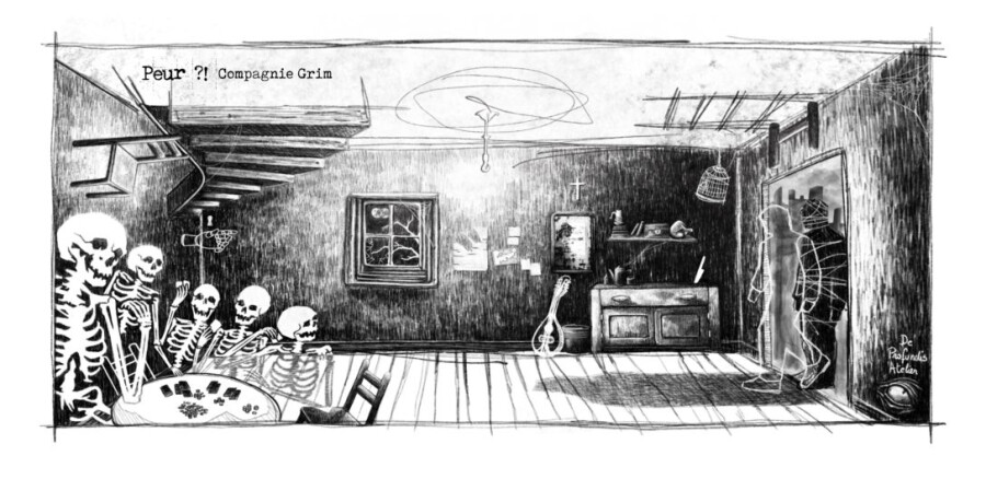 « Dehors, il y a la rue, des portes closes, des histoires qui courent. Il y a aussi Jean qui cherche un refuge où passer la nuit. Dedans, autour d’un festin, est réunie une étrange assemblée. On joue, on ricane, on se régale de récits glaçants. Mais Jean n’a peur ni des vivants, ni des morts. C’est pour ça qu’il est là…