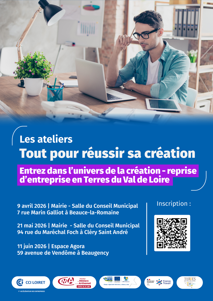 Ces ateliers sont organisés par la Chambre de Commerce et d’Industrie du Loiret et la Chambre de Métiers et de l’Artisanat Centre Val de Loire, en partenariat avec la Communauté de Communes des Terres du Val de Loire et France Travail.
