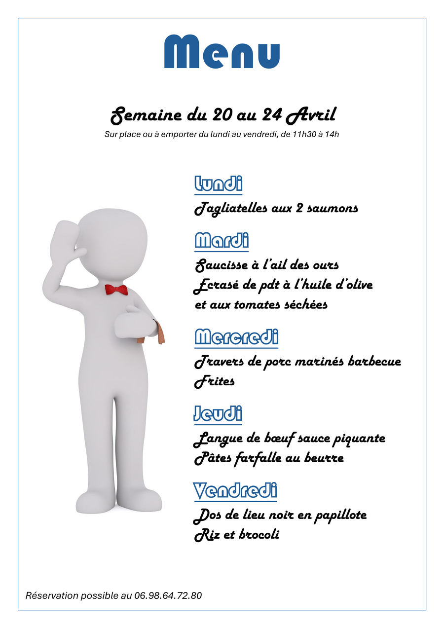 MENU du 20 au 24 avril