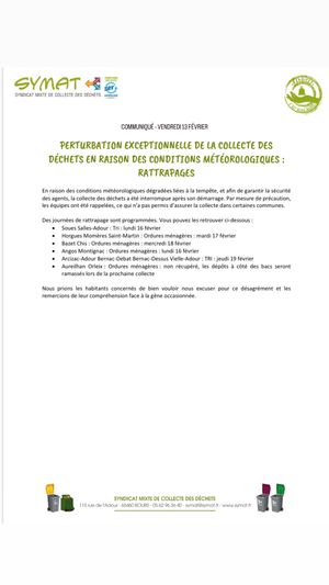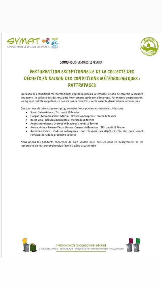 LE REPORT DE LA COLLECTE DE TRI AURA LIEU LE JEUDI 19 FEVRIER