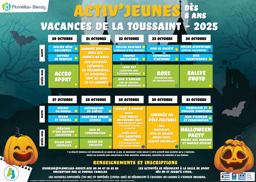 Du 20 au 31 octobre, le Pôle Jeunesse de Pluméliau-Bieuzy propose aux jeunes dès 8 ans deux semaines d’activités fun, sportives et créatives.
