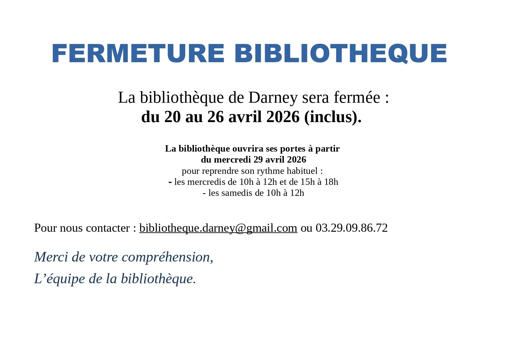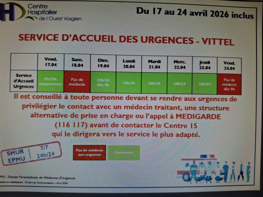 Il est définitivement fermé les samedis matins, SAUF URGENCE sur rendez-vous