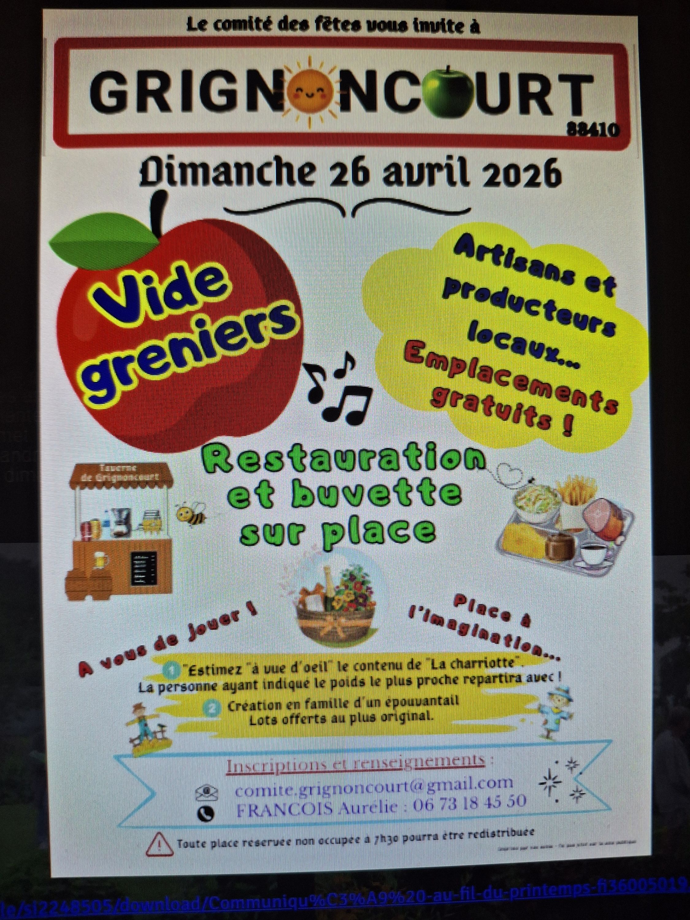 Le dépôt des articles se fera les samedi 25, mardi 28 et mercredi 29 avril