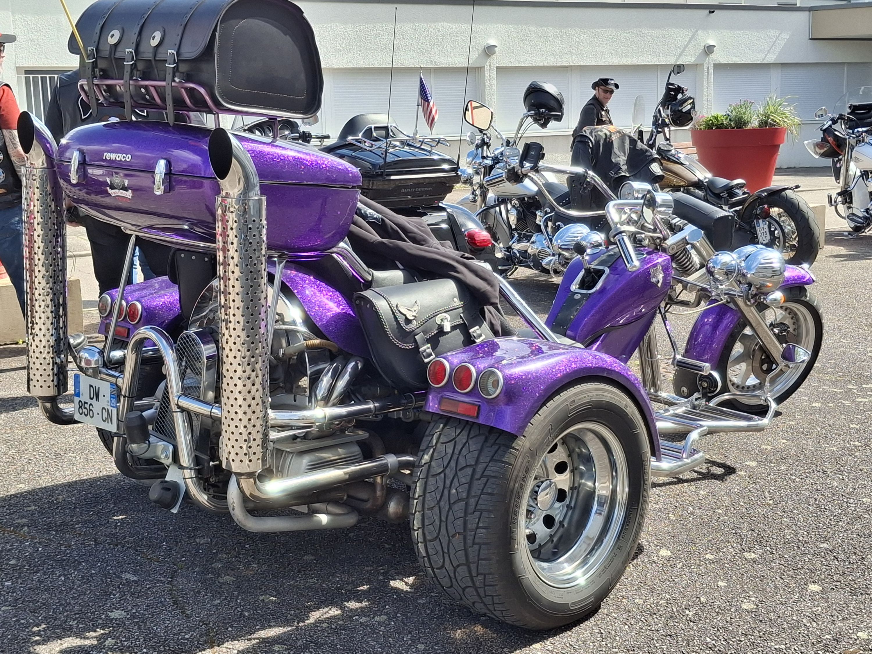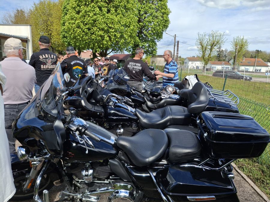 Résidents et visiteurs, venus en nombre, ont pu admirer de superbes motos et trikes (3 roues) de la marque Harley Davidson du club H.D.C. de Ville sur Illon ainsi que des voitures américaines, dont les légendaires Mustangs