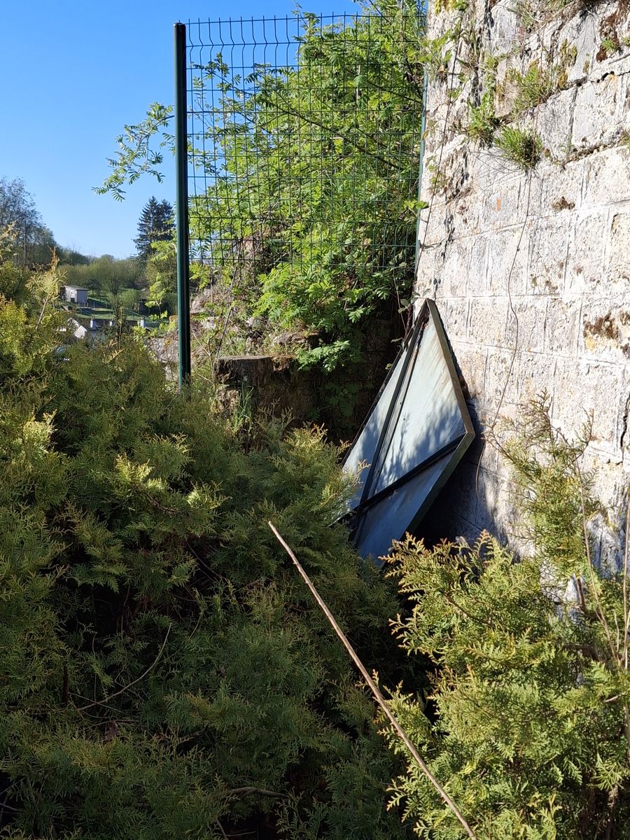 Détérioration encore jamais constatée à ce niveau malgré les nombreuses incivilités commises régulièrement et les tentatives d'escalade ayant contraint la commune à sécuriser l'accès par le haut.