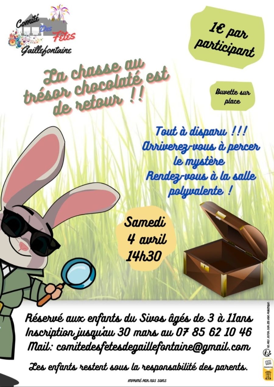 MARDI 7 AVRIL de 14h à 17h à la salle polyvalente de Gaillefontaine.
