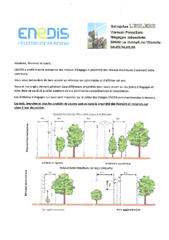 Nous avons mandaté la société LECLERC TRAVAUX FORESTIERS pour réaliser ces travaux (pris en charge par Enedis) dans les six mois à venir.