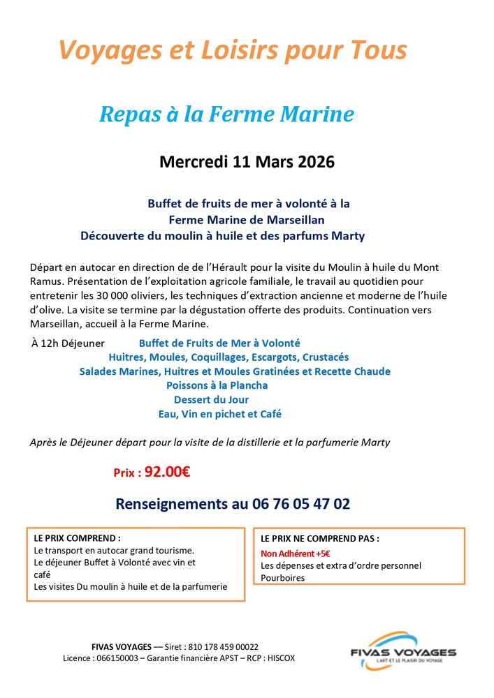 Renseignements au 06 76 05 47 02