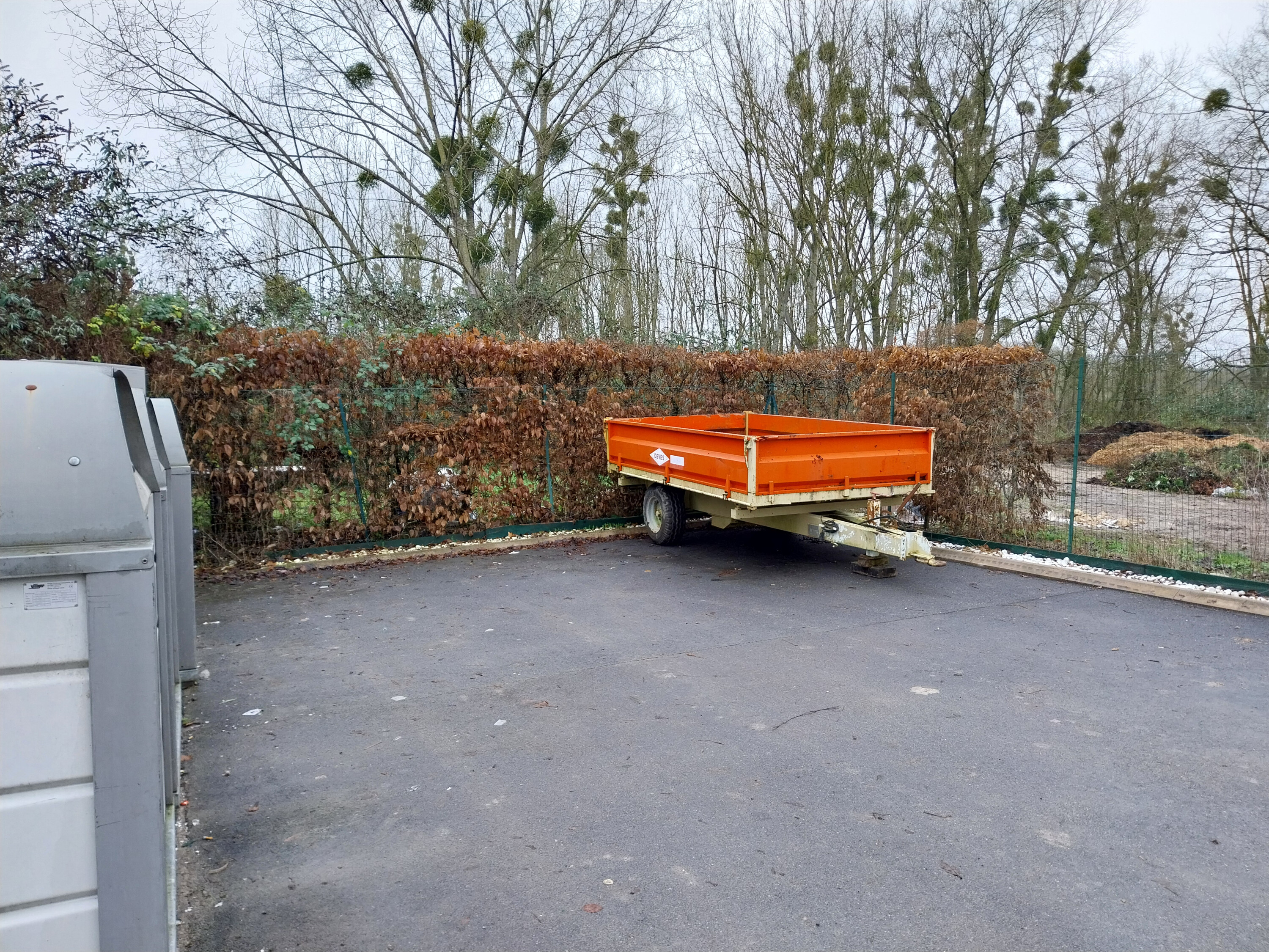 (face aux bennes à verre)