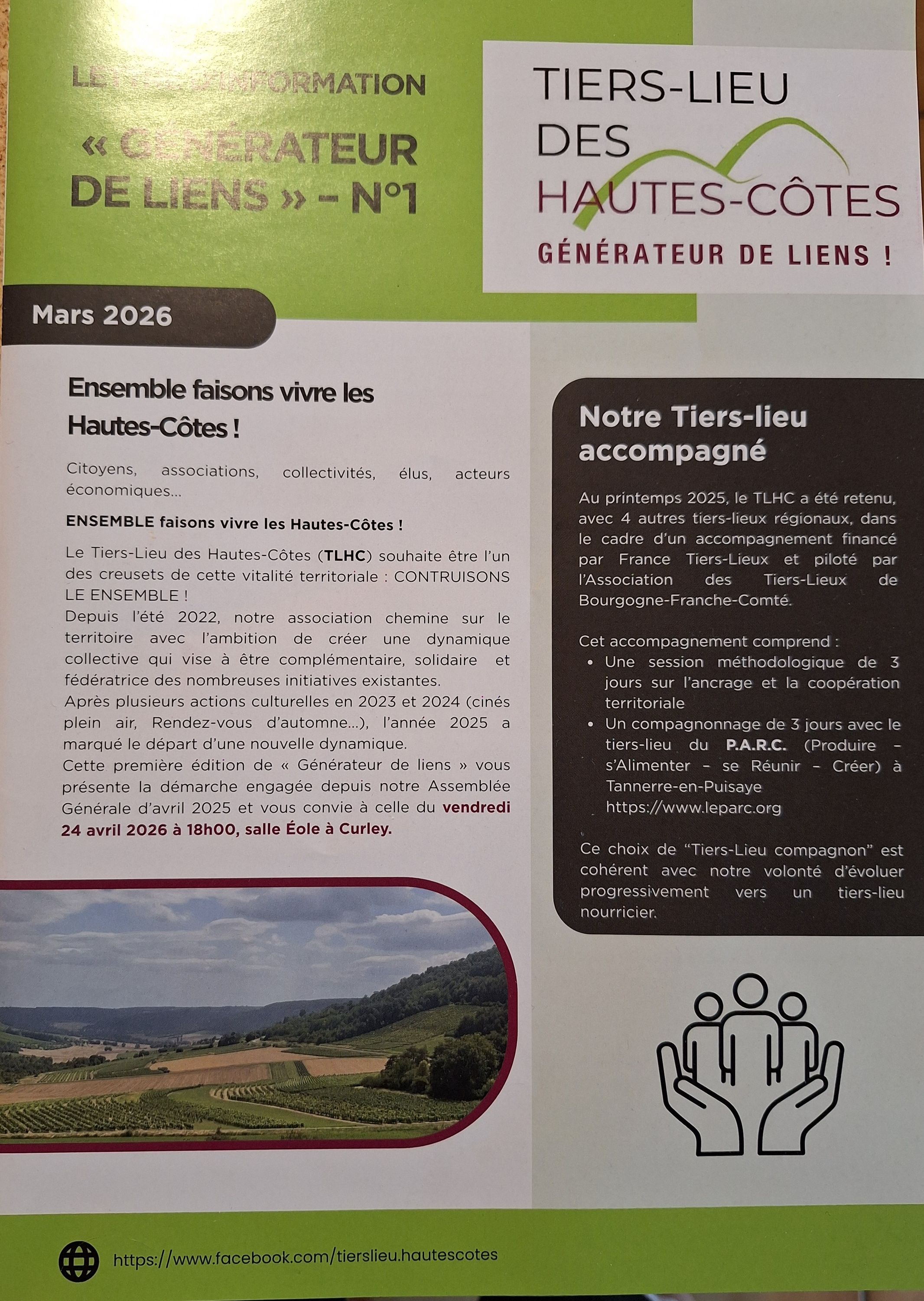 Réunion Tiers-lieu des Hautes côtes Salle Eole vendredi 24/04/2026 18h