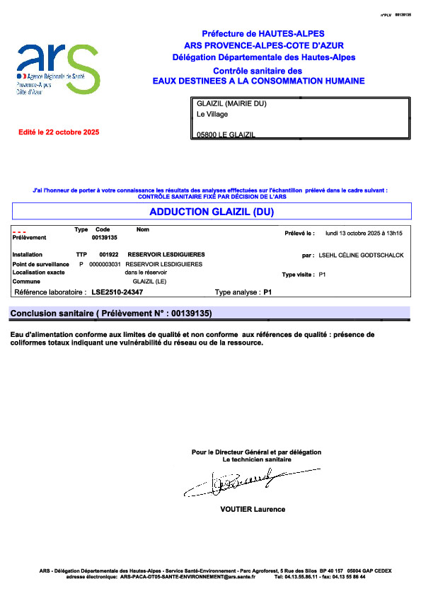 ATTENTION, coupure d'eau ce jeudi 9 octobre 2025 après-midi pour intervention du plombier sur le réseau d'eau de Lesdiguières (branche sud)