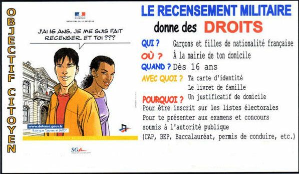 Le recensement citoyen est une démarche obligatoire et indispensable pour participer à la Journée Défense et Citoyenneté (JDC). Il permet à l’administration d’inscrire d’office le jeune sur les listes électorales à ses 18 ans.