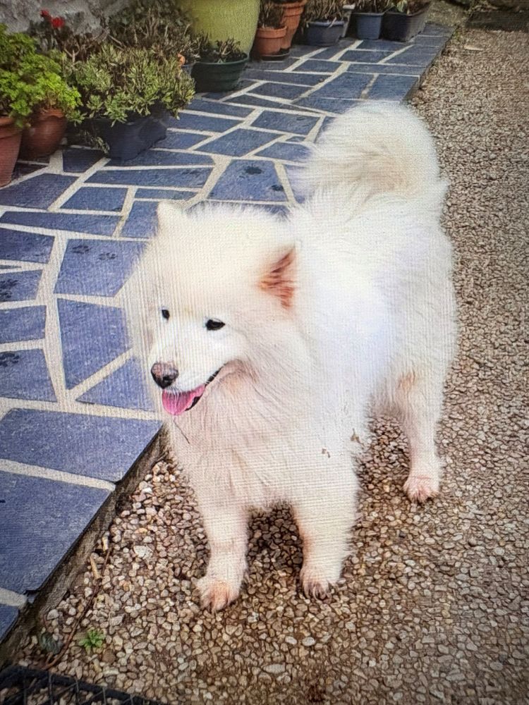Chien de type samoyède en divagation sur Le Theil.