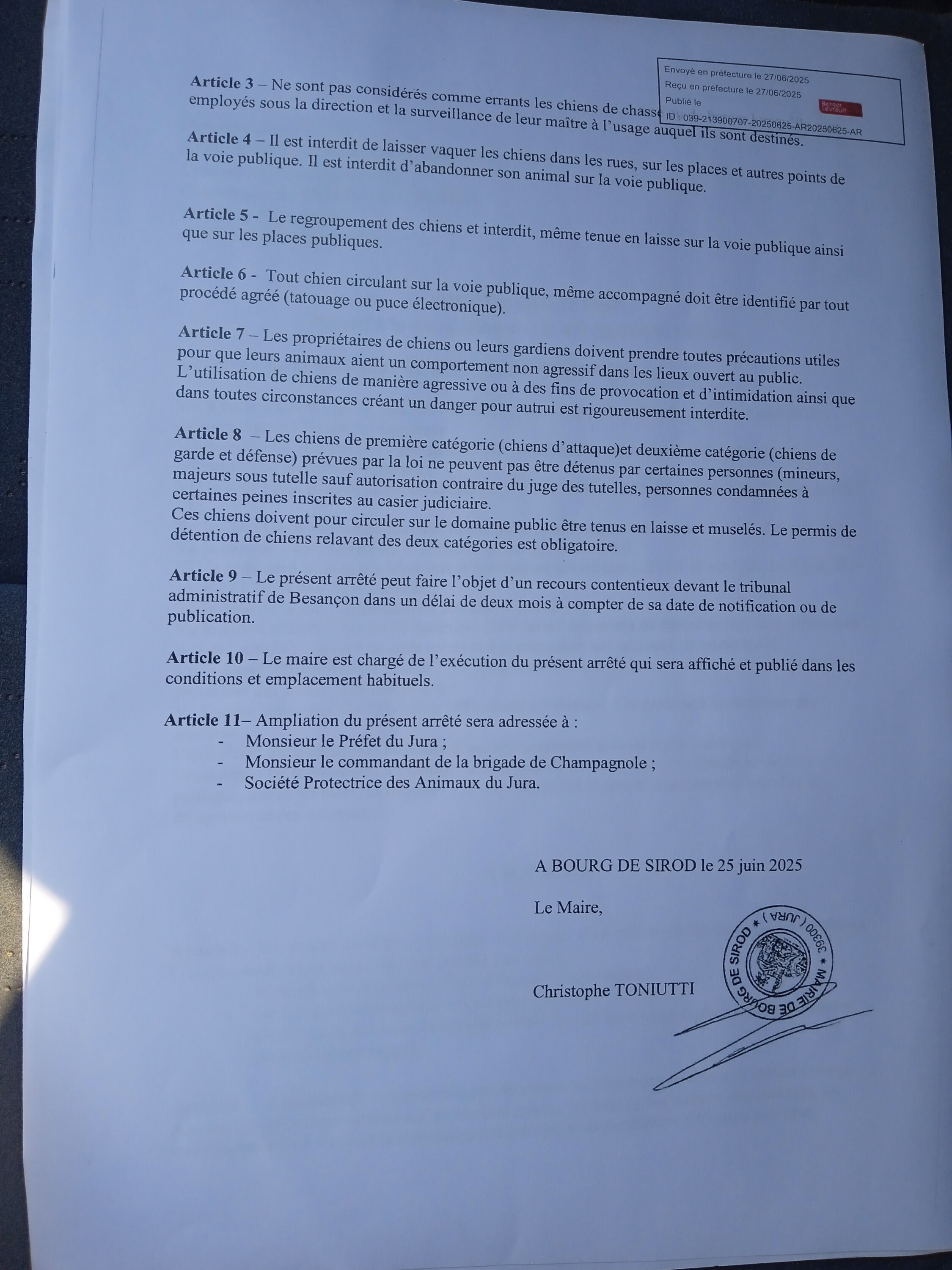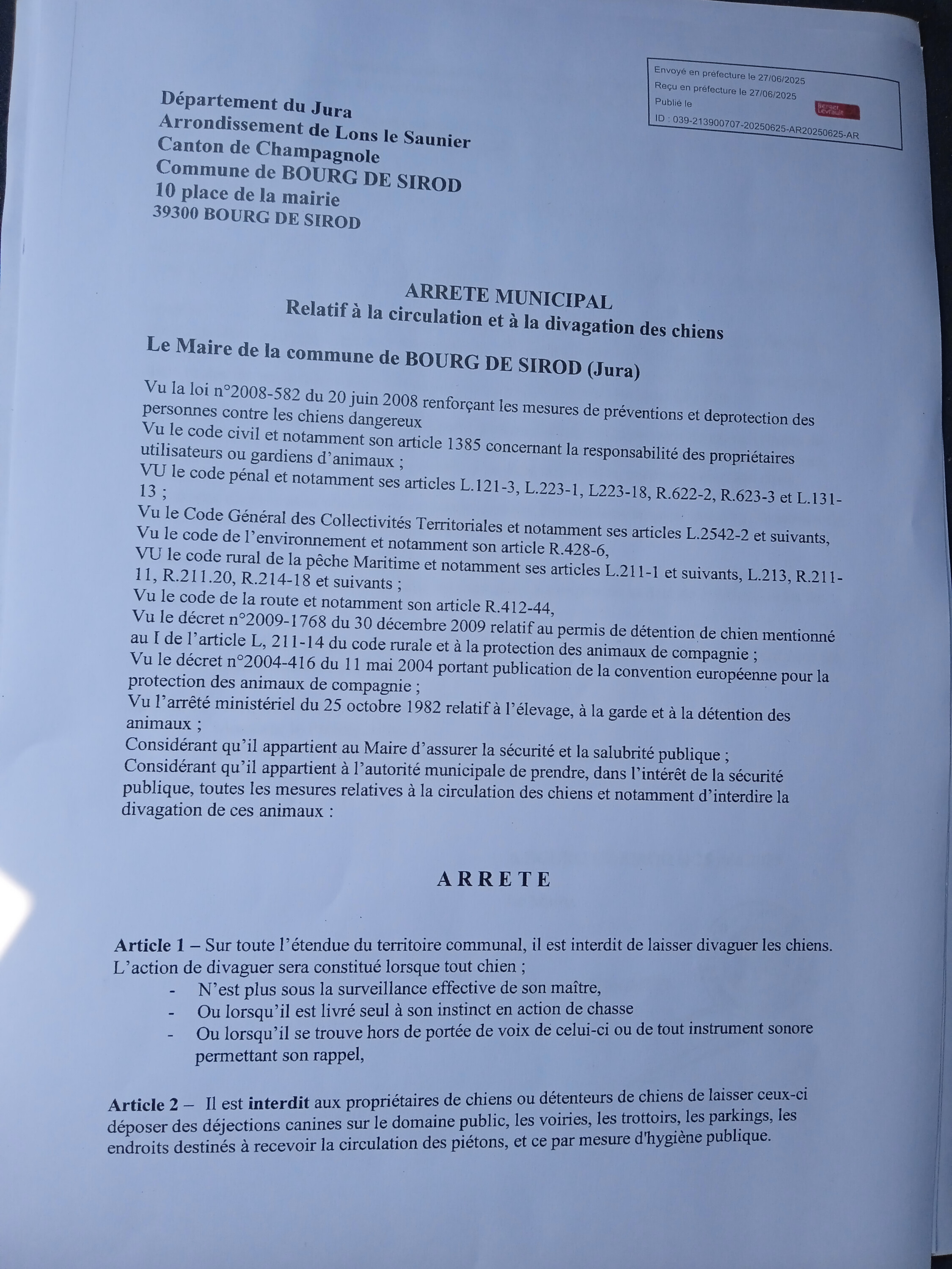 la commune de Bourg de Sirod décide d'interdire la circulation routière sur la petite route communale menant à Sirod