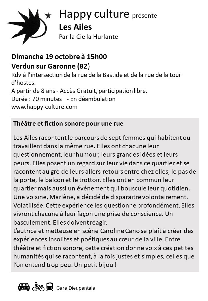 par la Cie la Hurlante "Les Ailes" le 19 octobre à 15h, rue de la Bastide.