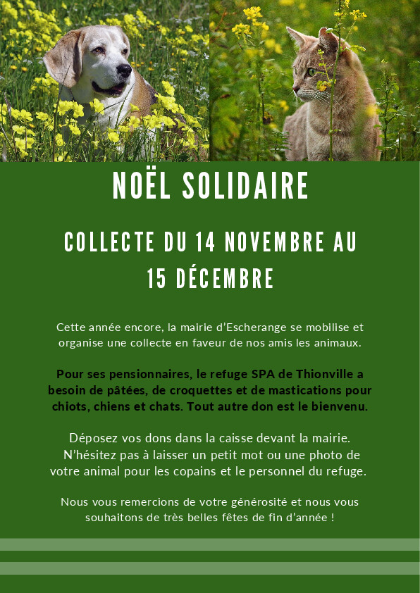 Cette année encore, la commune d’Escherange se mobilise et organise une collecte en faveur de nos amis les animaux.
