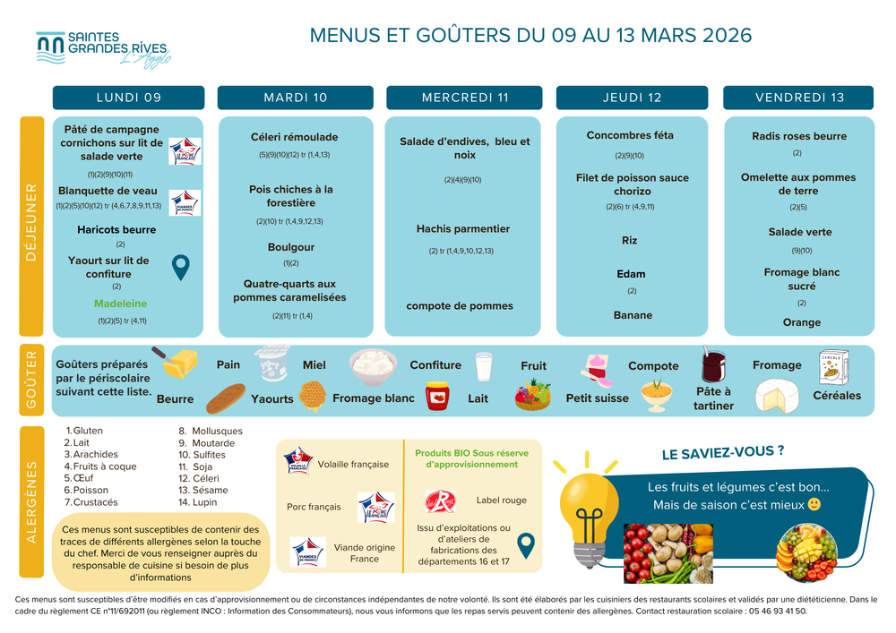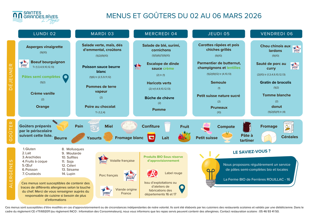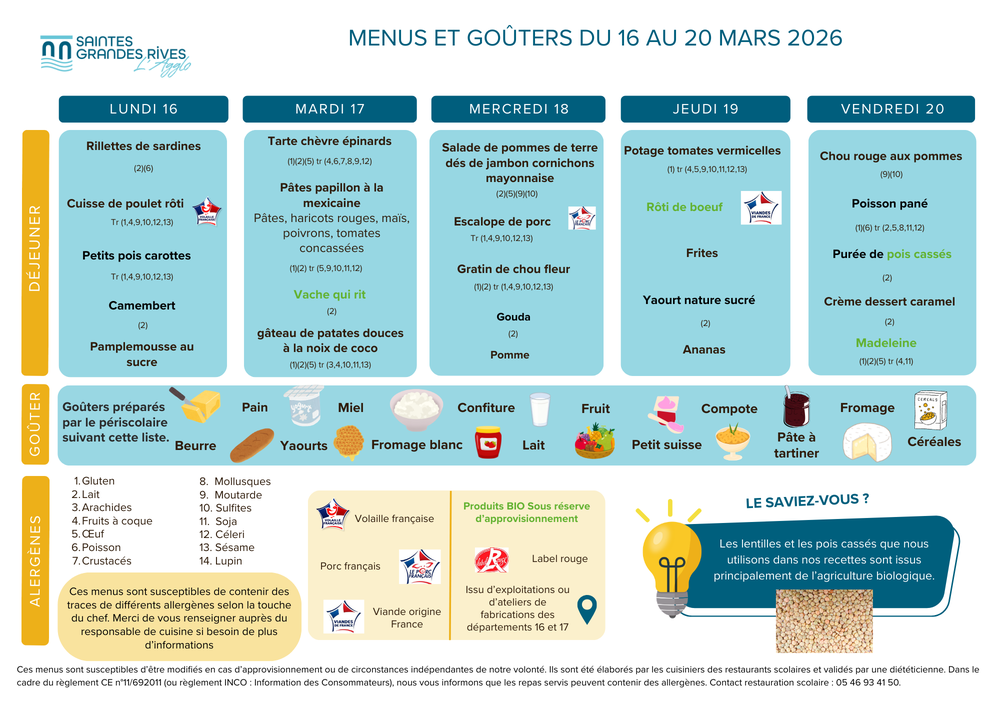 cantine scolaire maternelle et primaire Corme-Royal par l'Agglomération de Saintes :