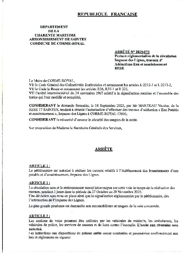 Déposer une demande: sur rendez-vous: par téléphone ou https://www.rdv360.com/mairie-de-corme-royal-17600-corme-royal?c=services-publics