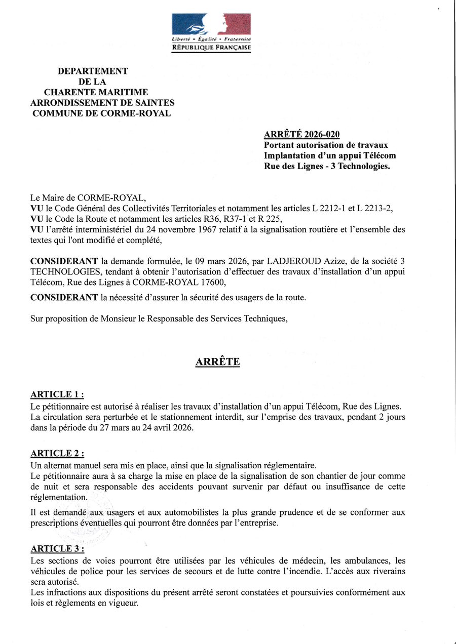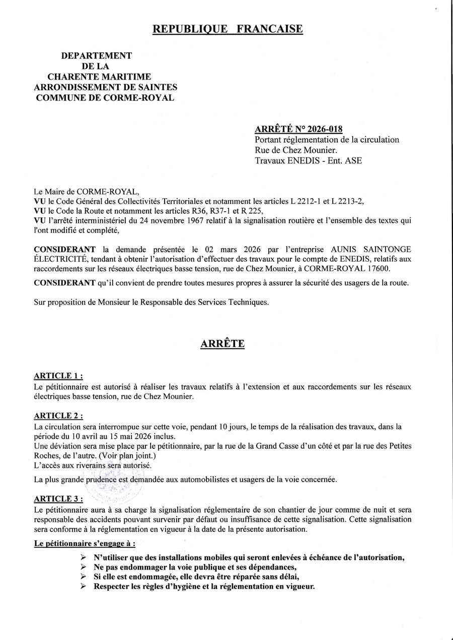 2 . Déposer à la mairie de Corme-Royal le dossier d’inscription complété et signé avec les pièces justificatives demandées : aux horaires d’accueil du public, dans la boîte aux lettres de la mairie ou par mail : contact.mairie@corme-royal.fr