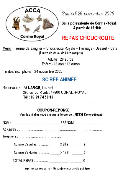 les vendredi 21 et samedi 22 novembre 2025 à Corme-Royal.