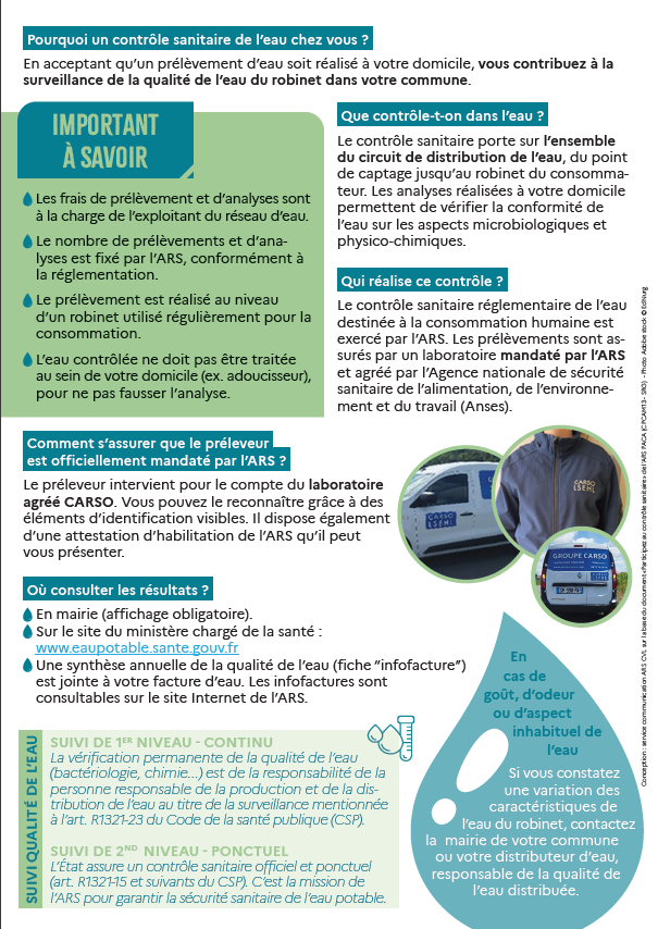 Le préleveur intervient pour le compte du laboratoire agréé CARSO. Vous pouvez le reconnaître grâce à des éléments d’identification visibles. Il dispose également d’une attestation d’habilitation de l’ARS qu’il peut vous présenter.