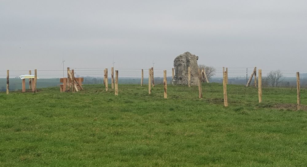 En décembre dernier, suite à des négociations menées en 2021 entre la mairie et la société WPD, une poubelle, un banc et une table d'orientation avaient été installés autour du "Menhir" de Vendegies.