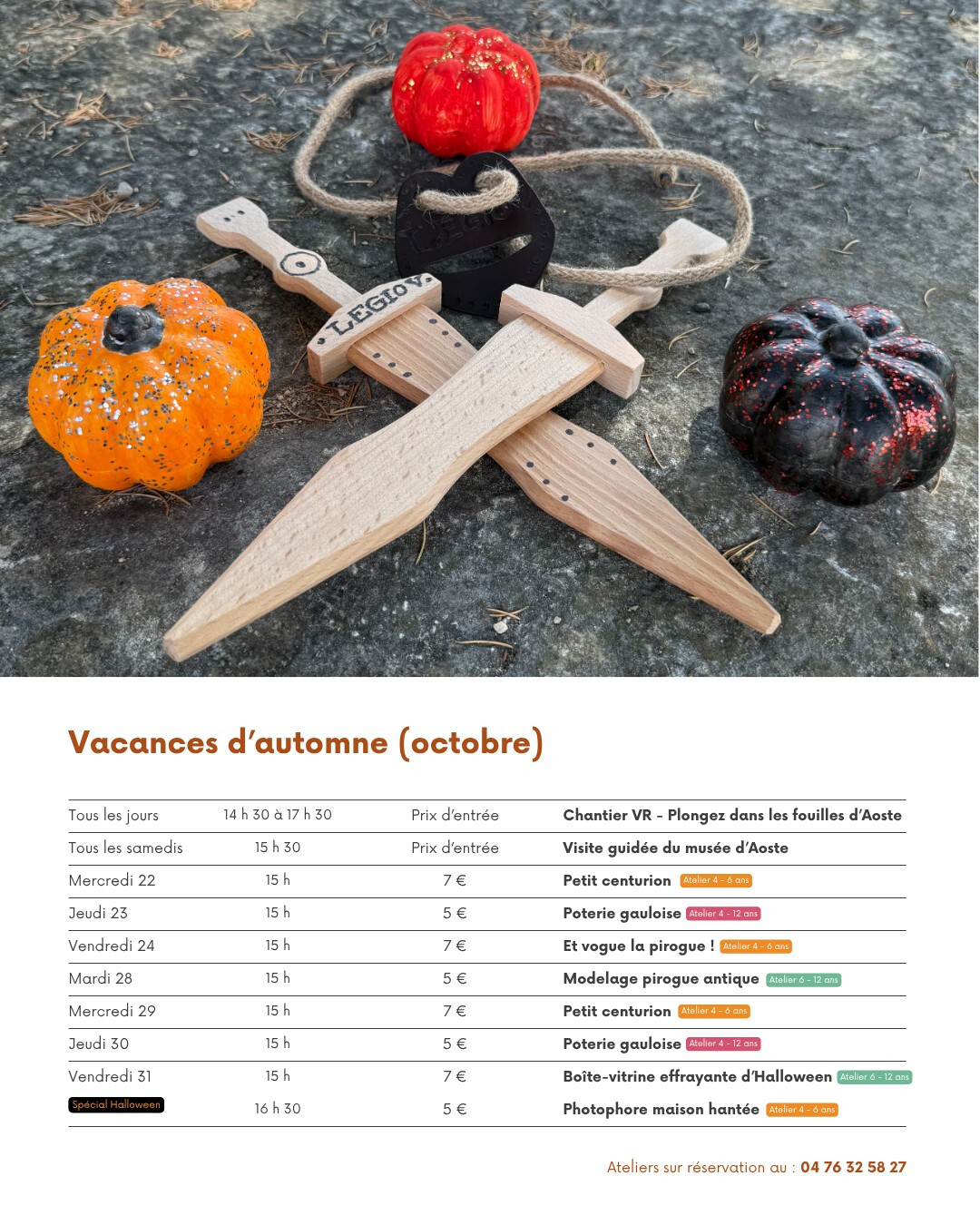 Retrouvez le programme complet des mois de septembre à décembre proposé par l'équipe du Musée gallo-romain d'Aoste !