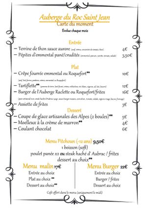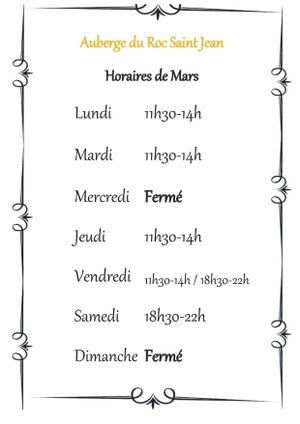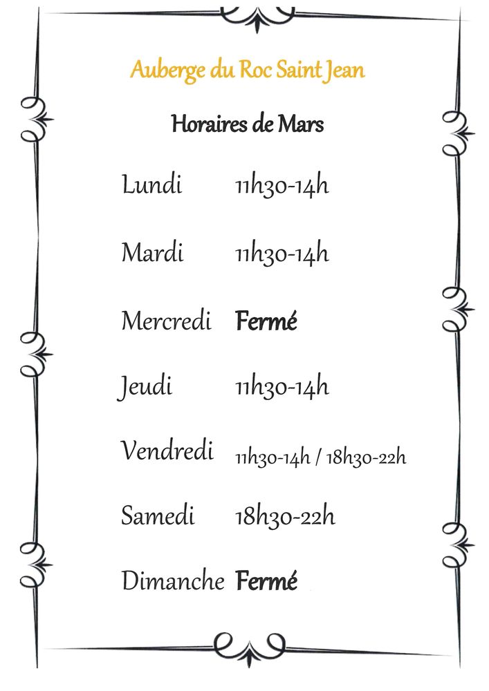 Pour janvier et février 2026, seul le bar est ouvert les vendredi et samedi soir de 18h à 19h30.