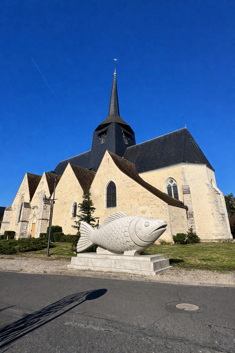 Nous vous invitons à découvrir ce magnifique poisson , installé devant l’église dans un premier temps .