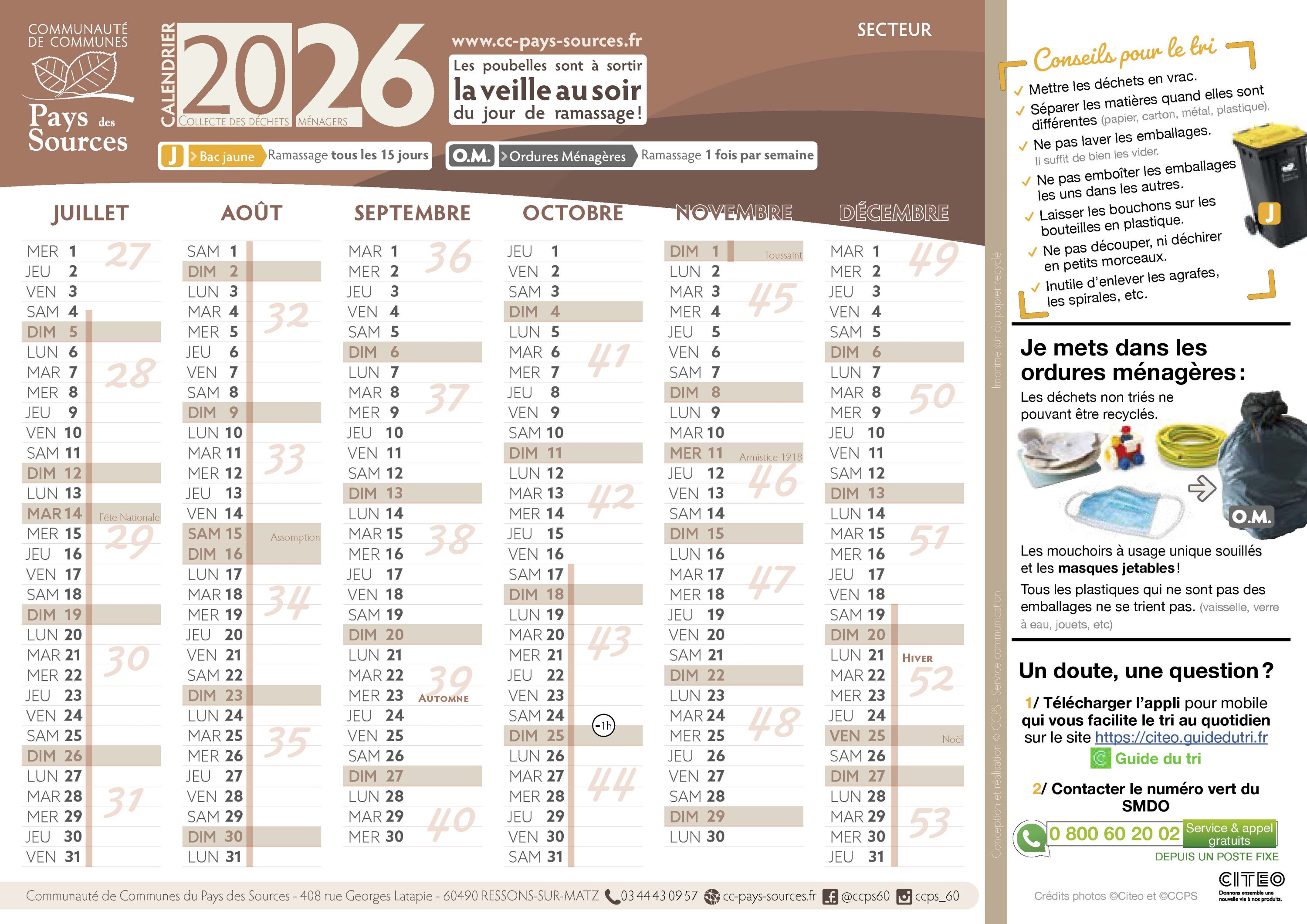 Le calendrier du tri 2026 est paru.