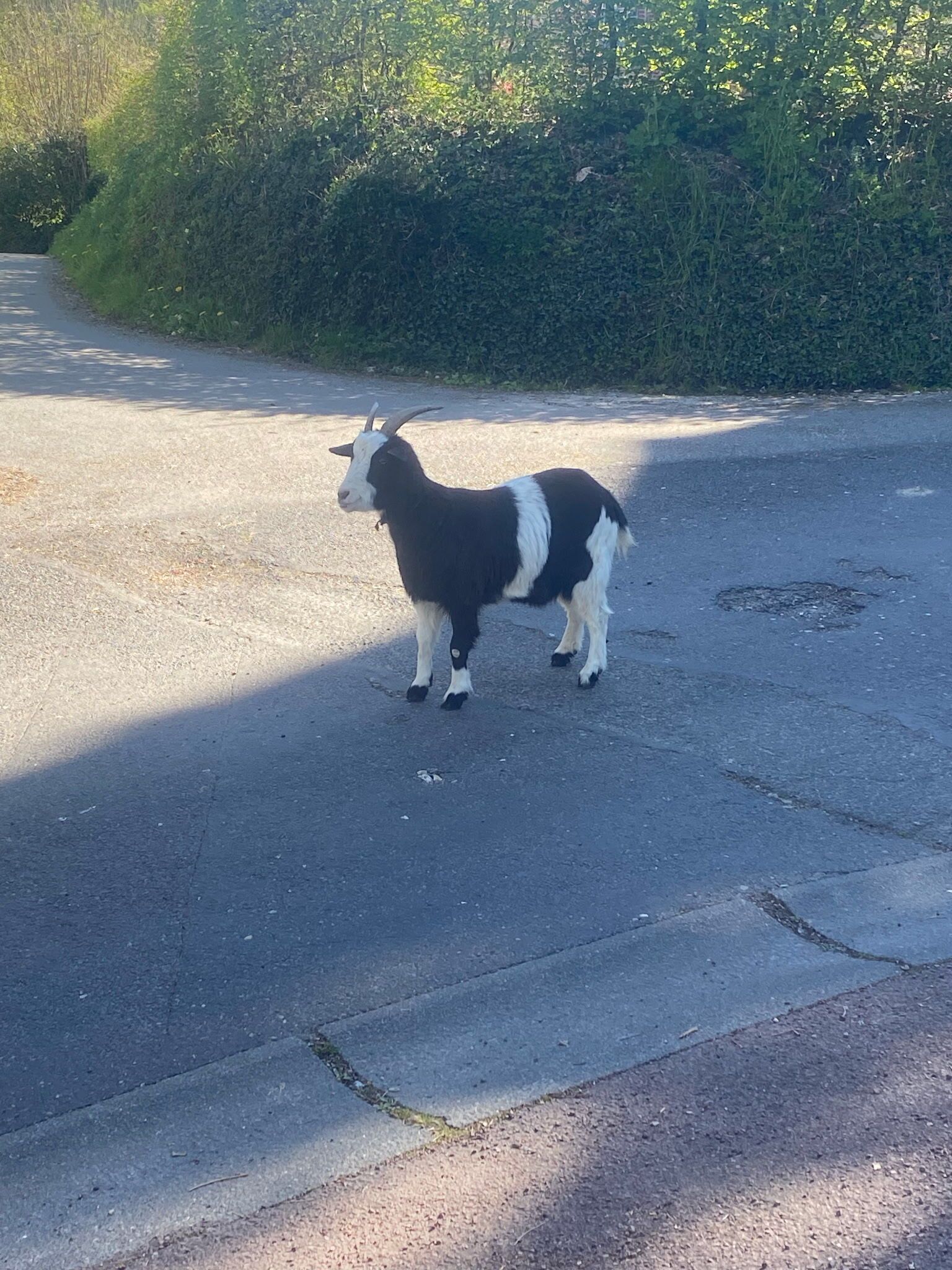 Une chèvre 🐐 naine blanche et noire divague sur St Martin depuis hier. Quartier de l’église. Nous n'avons pas réussi à l'attraper. Si le propriétaire pouvait se manifester en appelant le 0616174860.